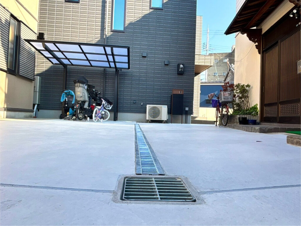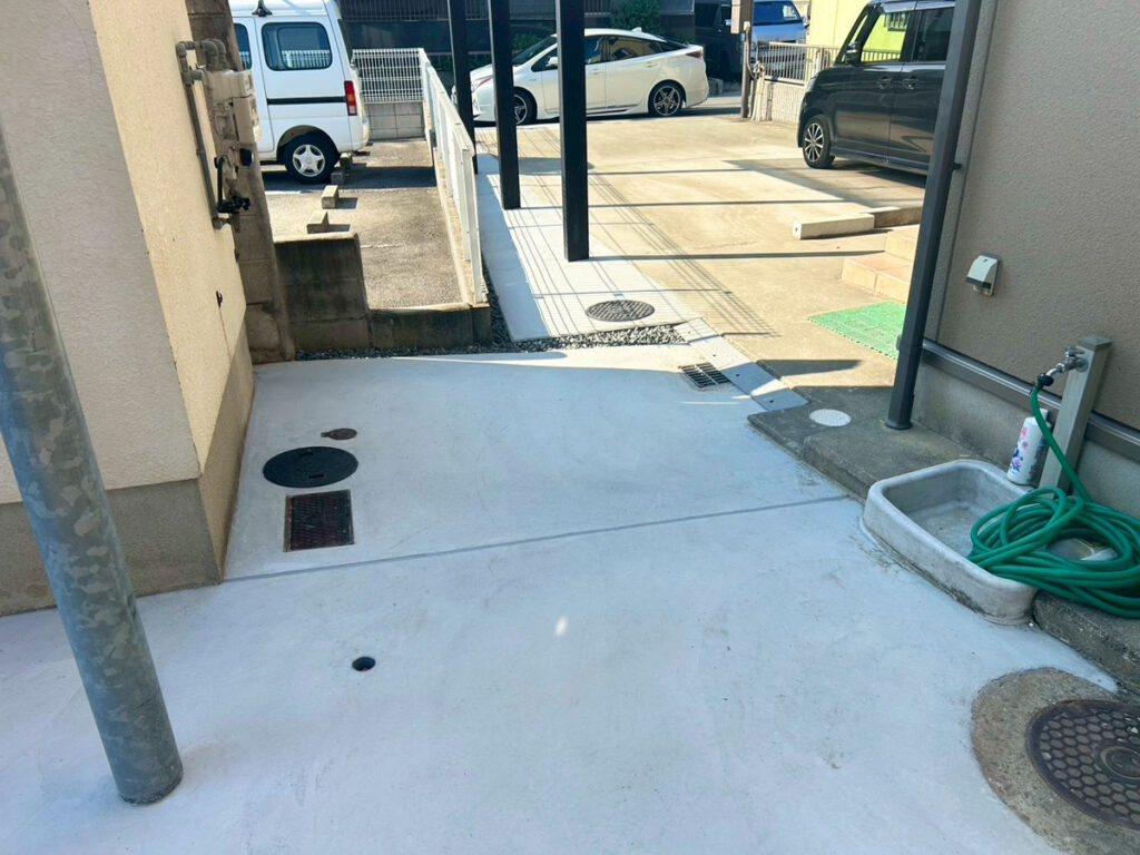 水勾配が取りにくい現場だったため、溝をつくり水溜まりもできることなく無事完了致しました。